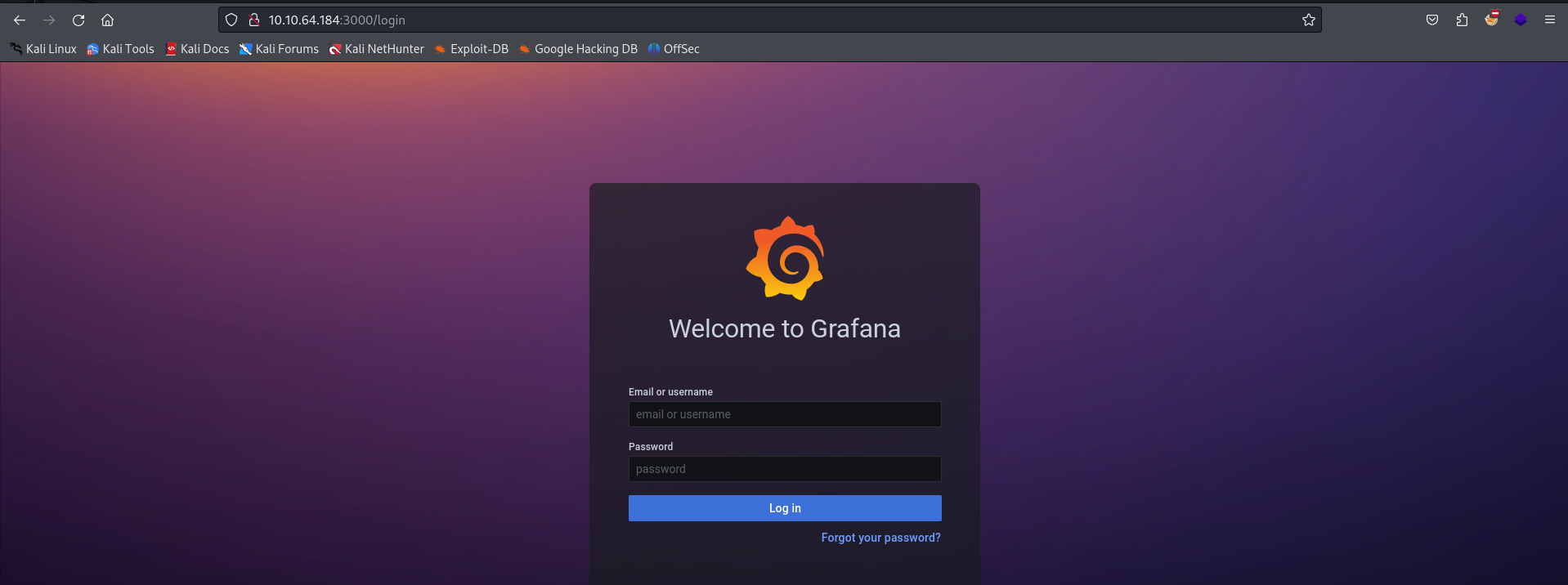 As for the service itself, Grafana seems to be a web application used for data visualization. While we’re currently interacting with a login panel, authenticated users will be met with a framework/GUI that allows them to configure imported data from databases such as SQL. You can find more information about the service via the documentation here.