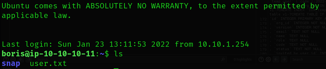It seems as though we were able to successfully crack this hash and have obtained the password for the boris user. We would normally use this to authenticate to the machine, however I tested it through SSH and it seems that this password is also used for SSH as boris.