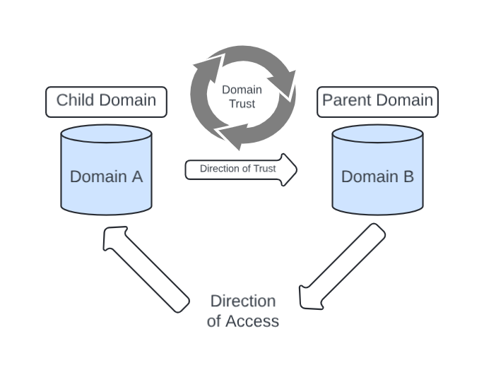 S-1-5, and can vary based on the domain object. (For example, an Administrator’s SID can beS-1-5-21-XXXXXXXXX-XXXXXXXXX-XXXXXXXXX-500, where500represents their privilege level.) - Child/Parent Domains: You’ll see me reference these two terms often. One domain is considered the parent domain (to which is allowed traffic towards the child domain) and the other is considered the child domain (to which the parent domain is allowing inbound traffic towards.)