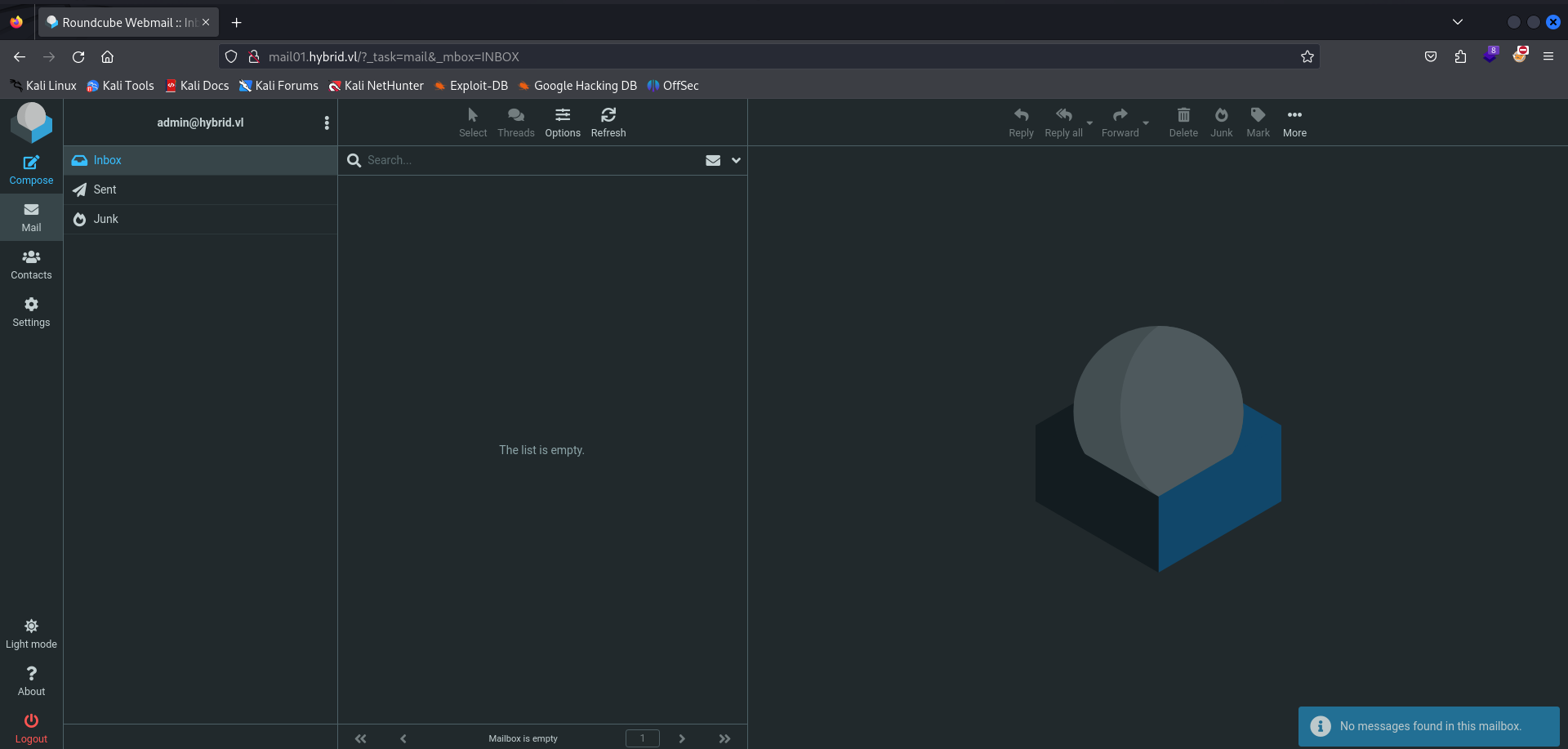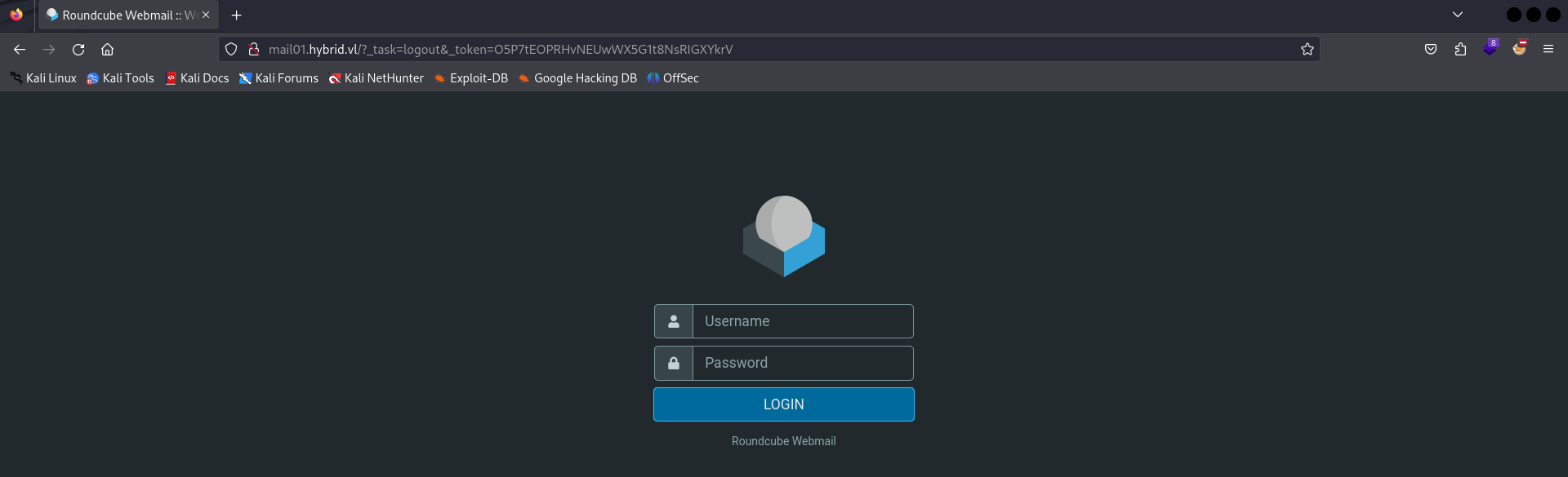 There seems to be an HTTP web server that is redirecting us somewhere. I also noticed that this machine’s domain name is mail01.hybrid.vl, so we’ll change this in our host file.
