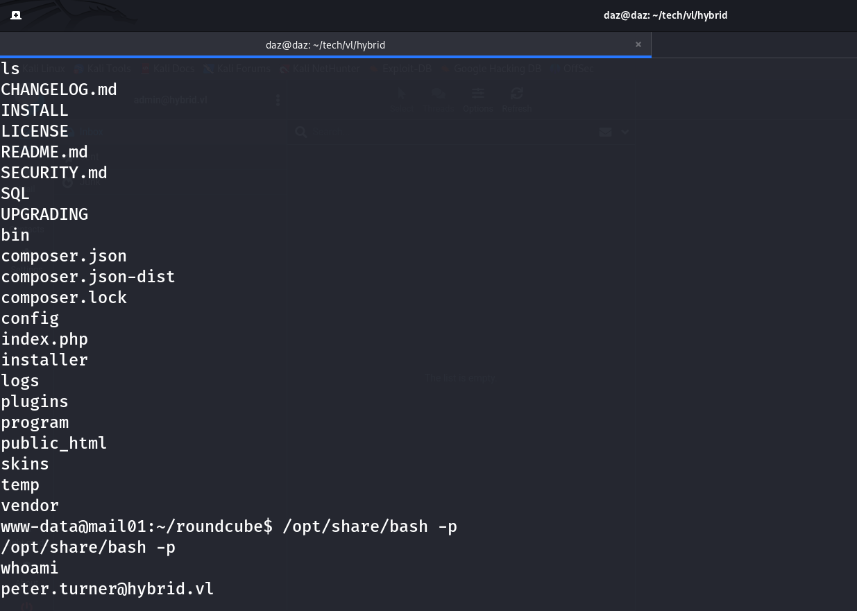 www-data@mail01:~/roundcube$ id peter.turner@hybrid.vl |