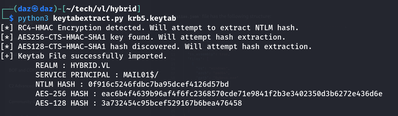 We can easily circumvent this by using a tool called keytabextract.py, which will dump the contents of this file in plaintext. https://github.com/sosdave/KeyTabExtract