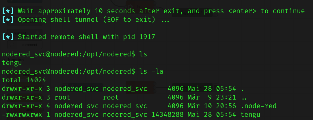I immediately started to look into the .node-red directory, as it seems to be the only unusual file in the users home folder. This directory housed a file that we can use to potentially escalate privileges - flows_cred.json.