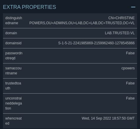 ldapdomaindump -u LABDC\\'rsmith' -p '[...snip...]' ldap://10.10.157.166:389BloodHound.py/bloodhound.py -d 'trusted.vl' -u 'rsmith' -p [...snip...] -c all -ns 10.10.157.166 --zip
