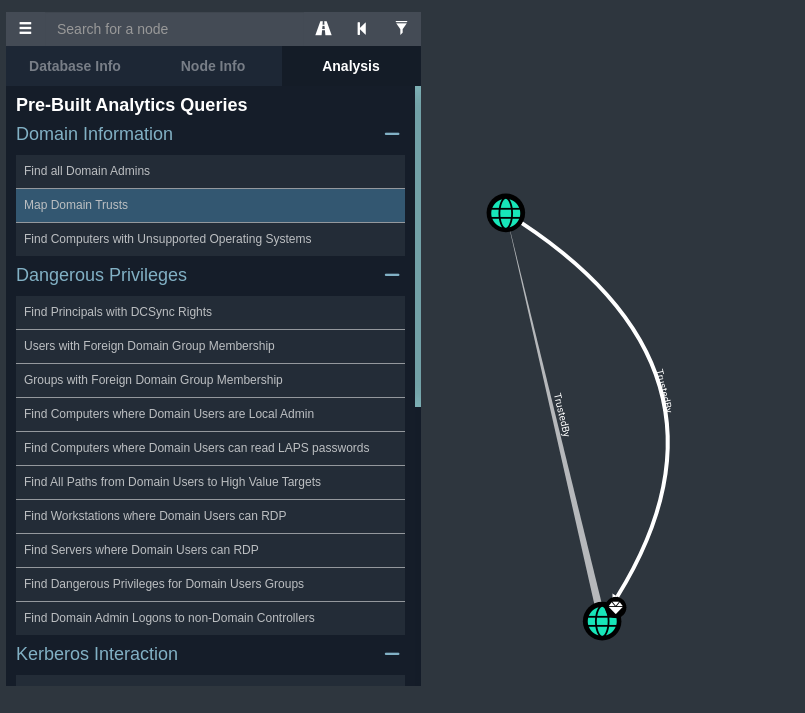I’d like to create a blog post about this in the future, as the term for this is called Domain Dominance and is relatively interesting how you can compromise domains through domain trusts. You can also verify this in Bloodhound by looking at the Map Domain Trusts in the Analysis tab.
