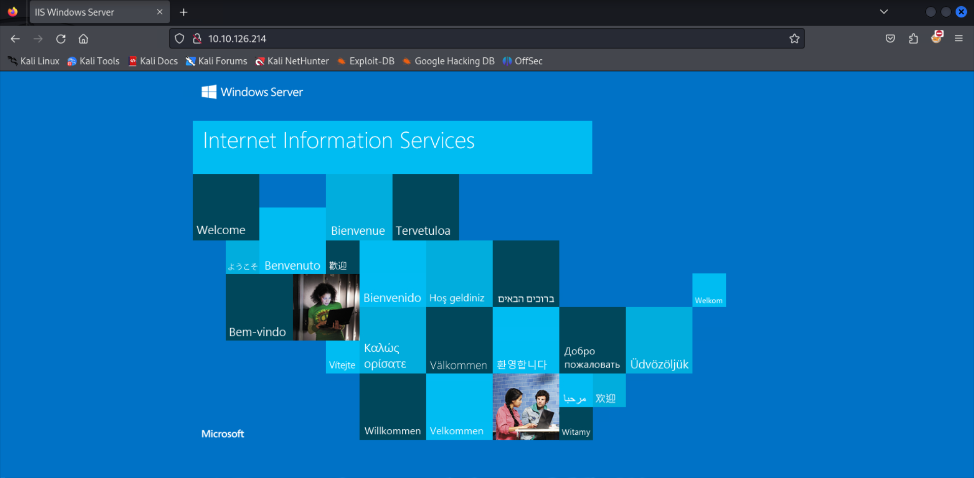 This looks to be a default IIS webpage, and running directory traversal scans on this webpage did not present me with any endpoints.